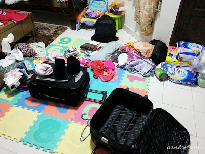 Since we spent the Thursday shopping baju raya, we have to pack during the morning and that's how we ended up packing for 4 hours *sabar je la*.